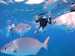 The snorkeling stops will be at some of the best snorkel spots within Cozumel's Marine Park according to our knowledgeable local captain (all gear and guide provided including snorkel, mask, fins, and flotation device as well as an easy ladder to get in and out of the water). The crew will assist you with the gear and help everyone into the water for an amazing guided snorkel trip, pointing out some of the marine life along the way. Note that snorkeling is from the boat and you will not be able to touch the bottom - the depth is approximately 15 to 25 ft (4.5 to 7.6 meters). There is a comfortable snorkel boat ladder to enter and exit the water as you please.