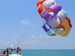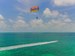 Each flight, whether solo or tandem, is about 8 to 10 minutes from take-off to landing. As you parasail, you may even spot dolphins playing in the surf or colorful tropical birds flying past. You will land back on the boat when your flight is finished. Although there may be a little bit of splashing from the water while you are in the boat, during the parasailing flight, the crew will not dip you into the water unless you ask.