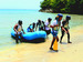 After spending some time exploring the waterfalls, it's time to get on your river raft and start your exciting journey downstream. Along the river, there are many fun rapids to enjoy and also a relaxing spot to take a swim and a platform to jump into the refreshing river water.