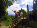 The walkways through the jungle are concrete with wooden steps and rails. The suspension bridges on the trees are 4 feet wide and have a capacity of 10 people at a time. They range in length from 150 to 200 feet. They are rated as the strongest as well as the longest in the western Caribbean! The journey is fun, safe, and completely guided.