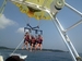 Everyone enjoys the flight over the lovely turquoise waters. It is so peaceful and quiet with little to no jostling. But the adrenaline does get pumping as you float up to 600ft (182 meters) over the water! You will have the option to fly solo or have a friend join you for a tandem flight. Each flight (solo or tandem) is approximately 12 minutes from take-off to landing. When your turn is completed, the boat will reel you in and you will land right back on the back of the boat. For extra thrills, you can ask the captain to dip your legs into the water on the way, or you may choose not to. There will be more fliers on board, the excursion may take 60 minutes, or so, for each to have their turn. But, while waiting you can sit back and enjoy the views!