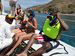 Aboard your catamaran, you can relax in the sunning nets or comfortable seating. Upon boarding the boat you will see that the crew has gotten lunch ready, and drinks will be ready to flow, please note that alcoholic drinks would only be served after the snorkel portion of your excursion.