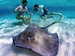 Once you arrive at Stingray City, you'll be able to get in the water and enjoy interacting with the docile Southern Rays. They are quite friendly and have become accustomed to humans over the years. You'll be able to feed and interact with them, which is an experience not soon forgotten. The snorkel guides will go over how you should handle the rays and be with you at all times in the water. You may choose to snorkel over the rays if you wish as well. All snorkel gear is provided including masks, snorkels, fins as well as snorkel floatation vests for those who wish to use one. The shore excursion crew will show you how to use it all. Once your fun with the rays is completed, the crew will help you back on board.