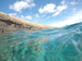 Molokini, is a partially submerged volcanic cinder cone that reaches to a height of 161 feet (50 meters) at its highest point. The uninhabited island is approximately 2.5 miles (4 kilometers) off the southwest coast of Maui. Its crescent shape makes a perfect protected bay from waves and currents, which means clearer water. A large reef is home to more than 200 species of fish.