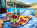 There is plenty of room for everyone, and there are both sunny areas to work on your tan as well as places in the shade. There is a restroom on board as well. Enjoy the onboard service that includes snacks, drinks, and water.