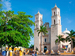 This beautiful, colonial city features Montejo Boulevard, styled after the Champs-Elysees of Paris, and a large, fortress-like Cathedral built in 1774 from stones of the Mayan pyramid of Xbacluum-Chaan. The Fatherland Monument, tracing the history of Mexico and Mayan people, the House of Montejo a 16th-century mansion, the Government Palace built in the 19th century, Plaza de Independencia, and countless venerable churches and squares highlight this delightful blend of colonial and Mayan heritage.